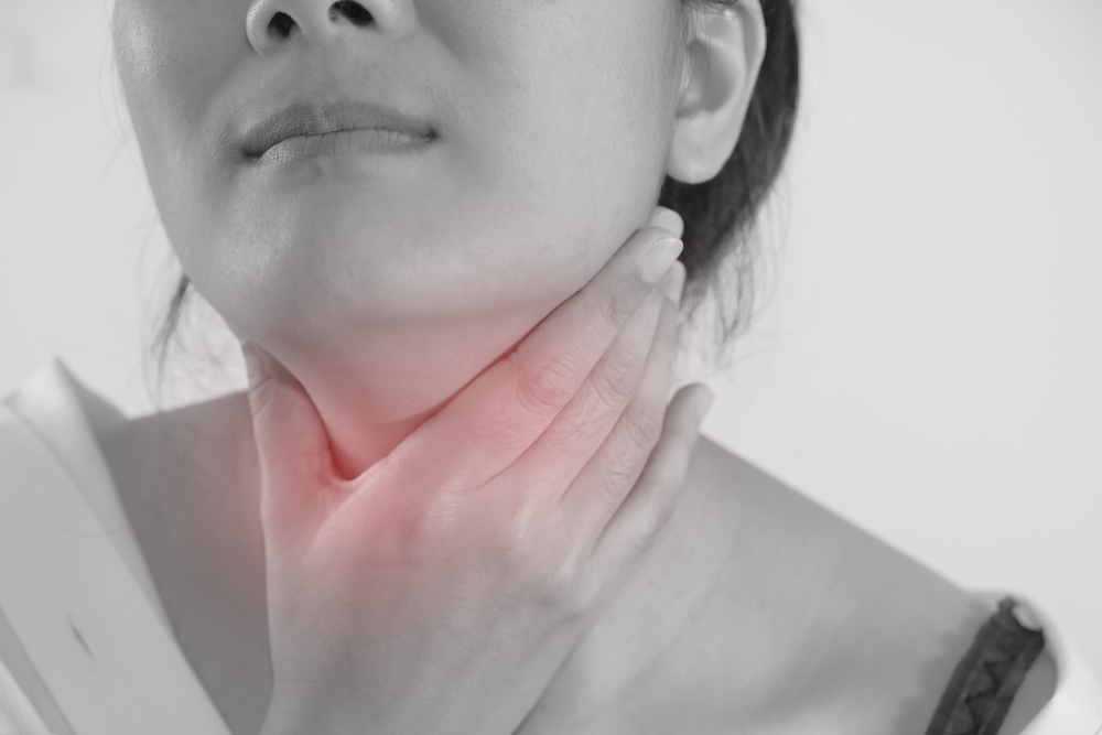 - kyselá nebo slaná tekutina v zadní části hrdla (pálivá)